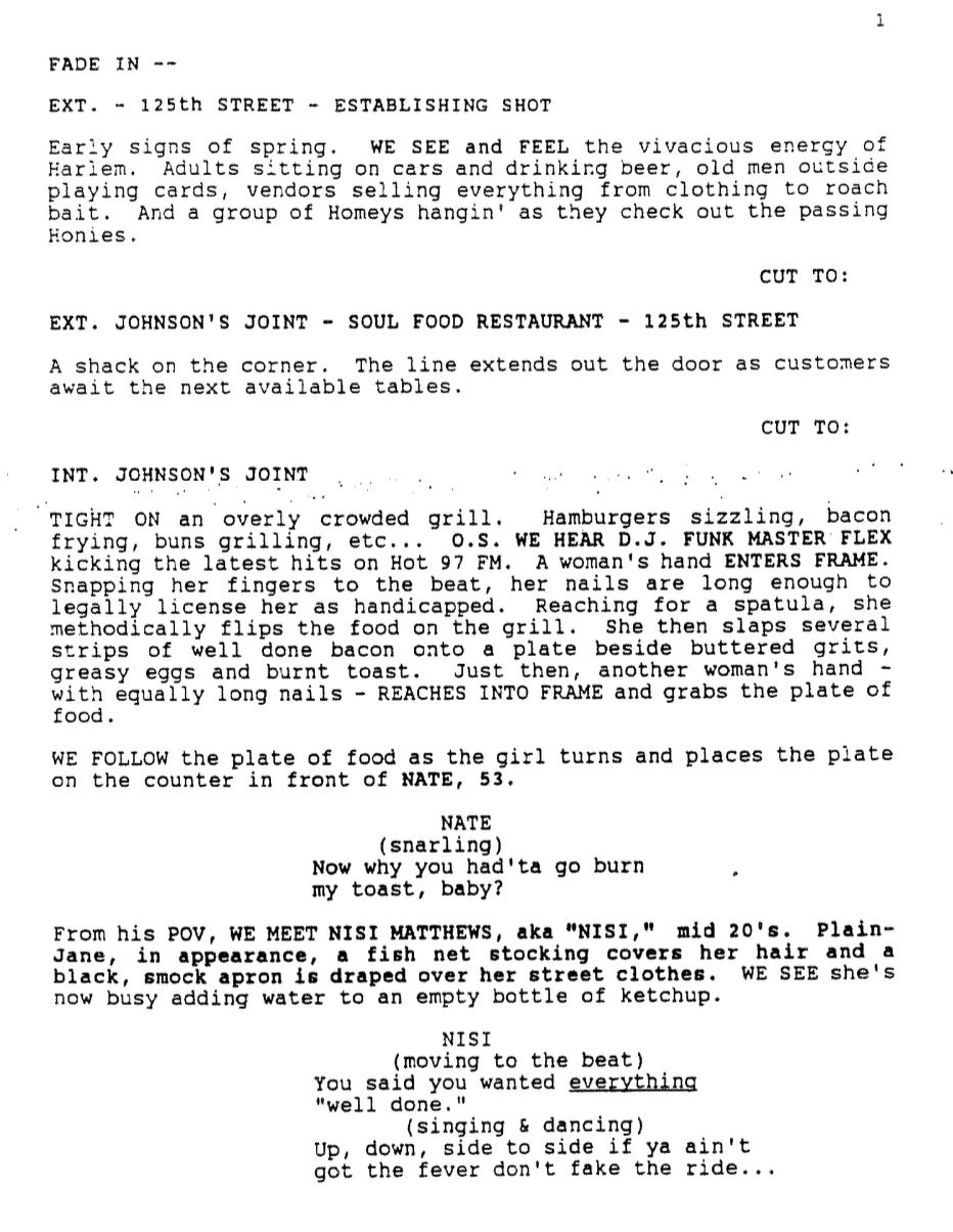 For my film lovers and writers, play scripts are vastly different from film scripts in how they convey their message. Take a look at a sample of this script from 1997 B.A.P.S. below.